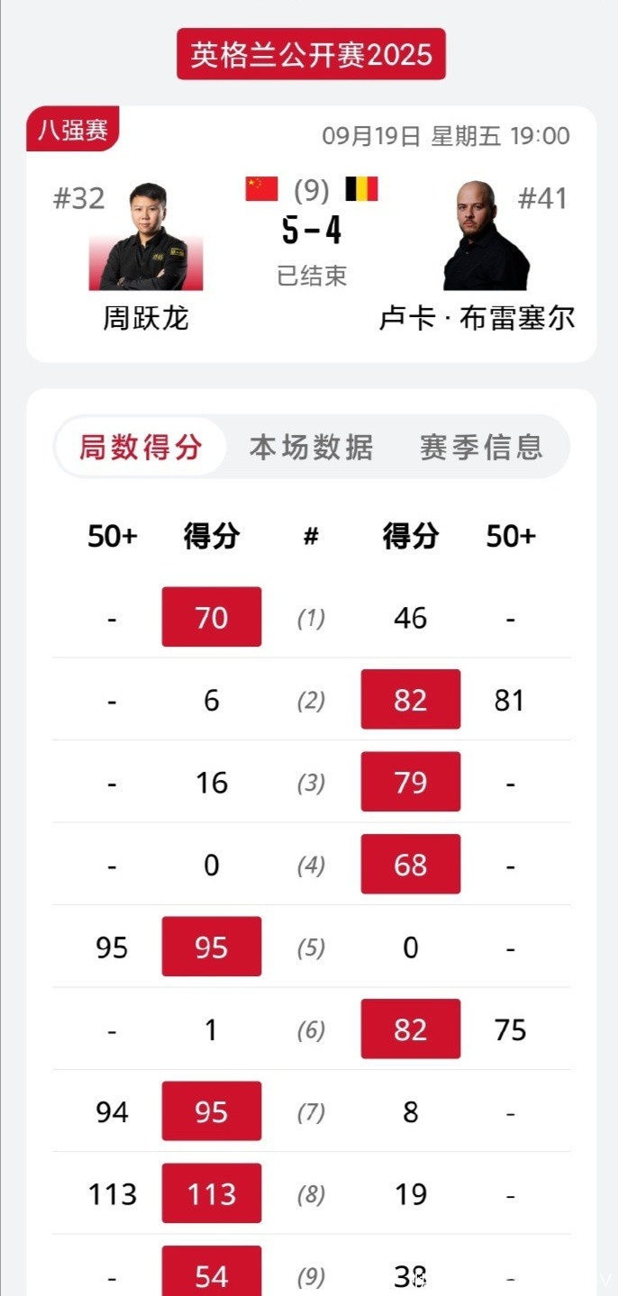 2025斯诺克英格兰公开赛过程9天的强烈较量,“中国147分先生”周跃龙挑联袂四届世锦赛冠军“磨王”马克-塞尔比,以及“小钢炮”马克-艾伦、杰克-琼斯打进临了的四强。
