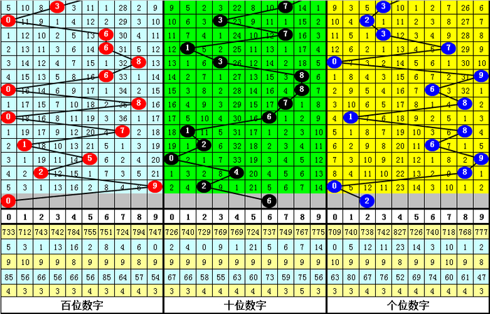 首位号码:上期为:9,遗漏21期,相对走冷,热码最近出现较少,本期谨防热码回补,眷注0。
